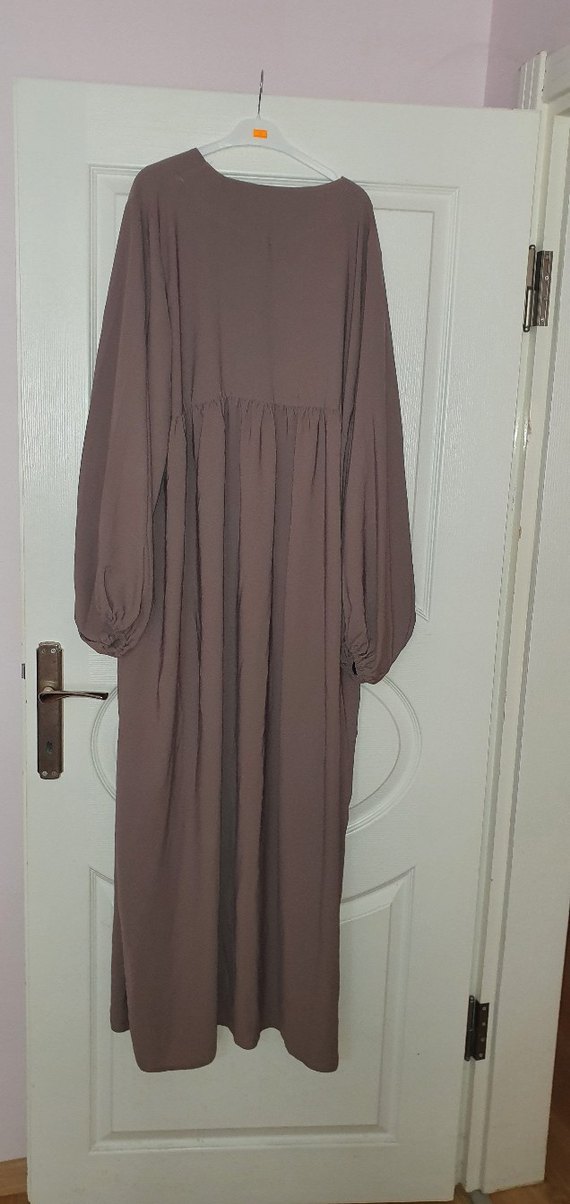 Bej Uzun Medine krip kumaşlı Elbise