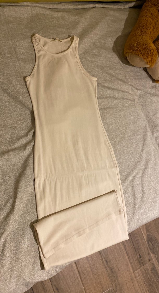 Pastel bej renkte, ince kesim ve desensiz, günlük kullanıma uygun.