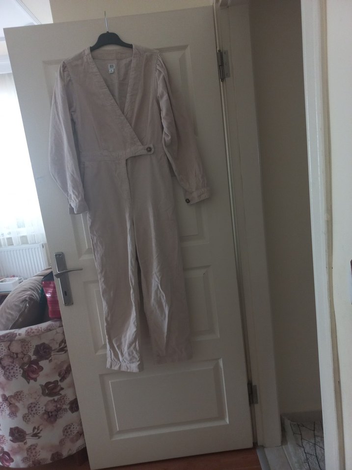 Bej Uzun s beden kadife tulum