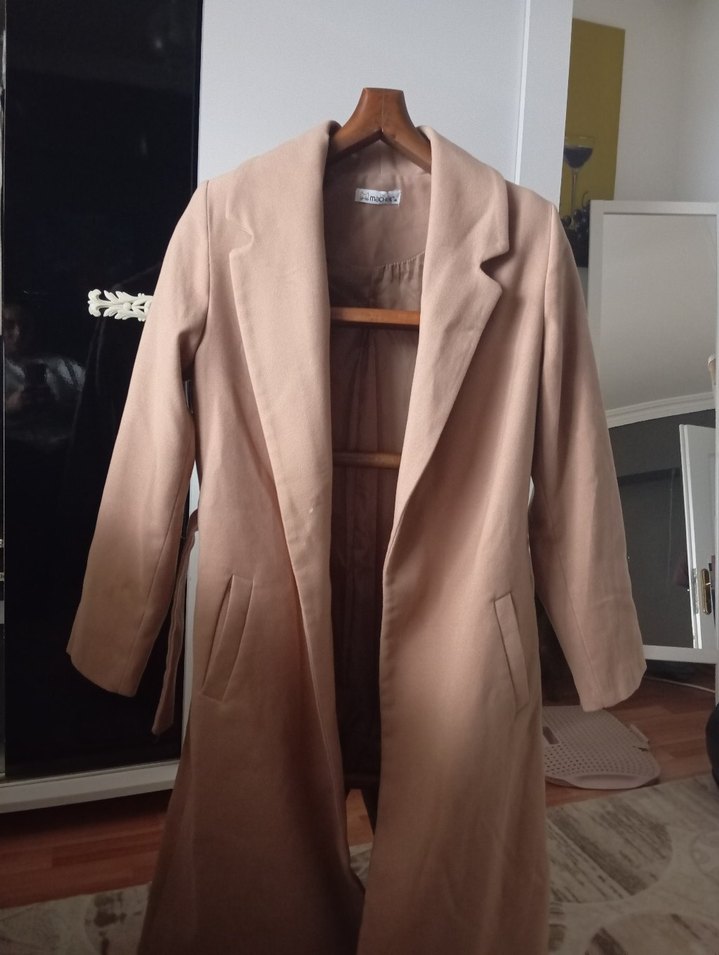 Bej renkli, uzun süet kaban, notched yaka ve düğmeli ön detaylara sahiptir. Uzun kollu ve regular fit kesimdir, günlük kullanıma uygundur. Desensiz ve sade tasarımıyla normcore Paris tarzını yansıtır. Boyu 120 cmdir.