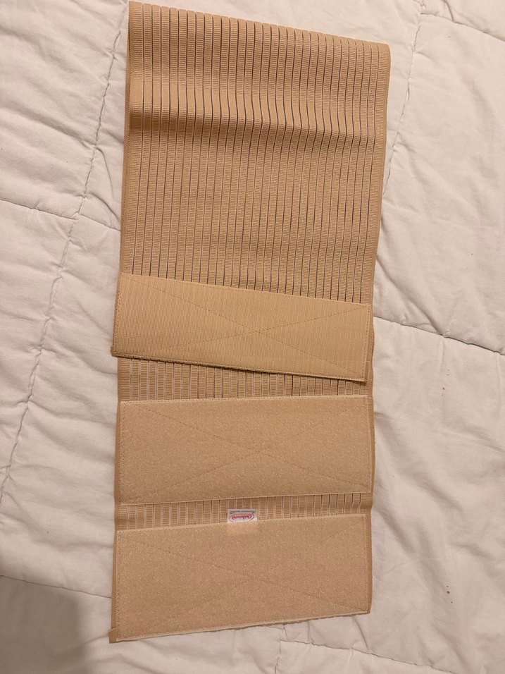 Bej renkte, uzun boylu ve düz desenli, rahat destek sağlayan korse