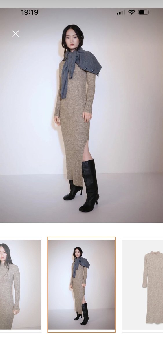 Bu dar kesim triko elbise yüksek yakalı ve uzun boylu olup, rahat ve şık bir görünüm sunar. Bej rengi ve desensiz tasarımıyla günlük kullanıma uygundur.