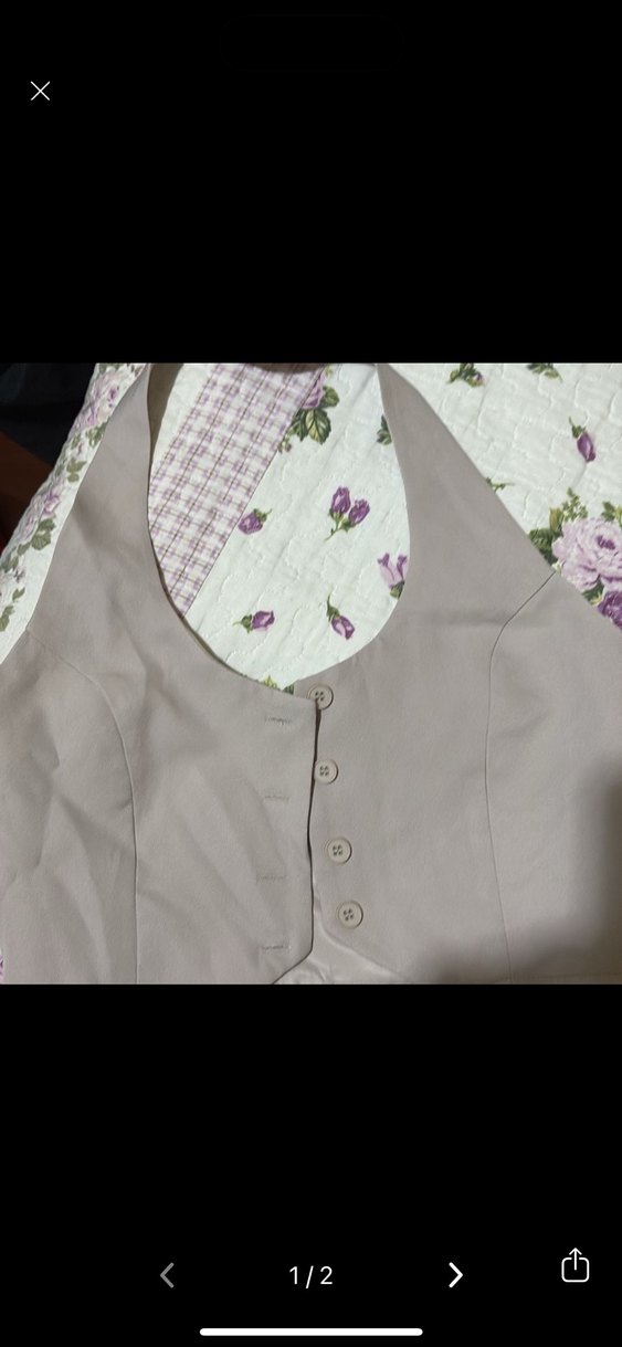 Bej renk, V yaka ve düğmeli kadın yelek. Kolsuz, vücuda oturan kesimde, yumuşak sentetik kumaştan, günlük kullanıma uygun vintage tarzda. xs ama s m icin uygundur bol oldu bana o yuzden satiyorum