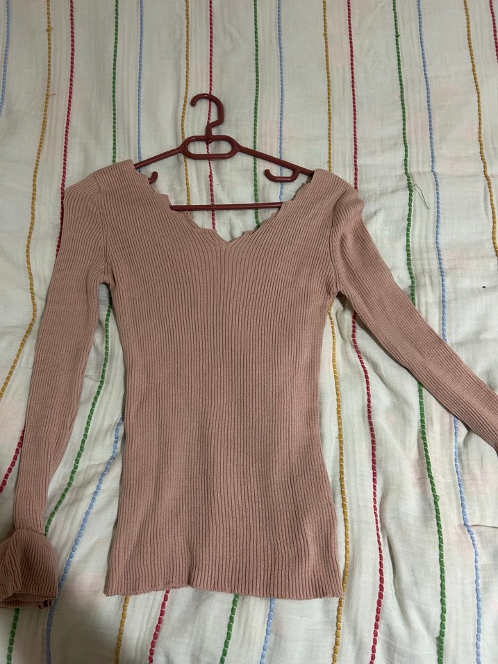 Bej V Yaka İnce Triko Kadın Kazak