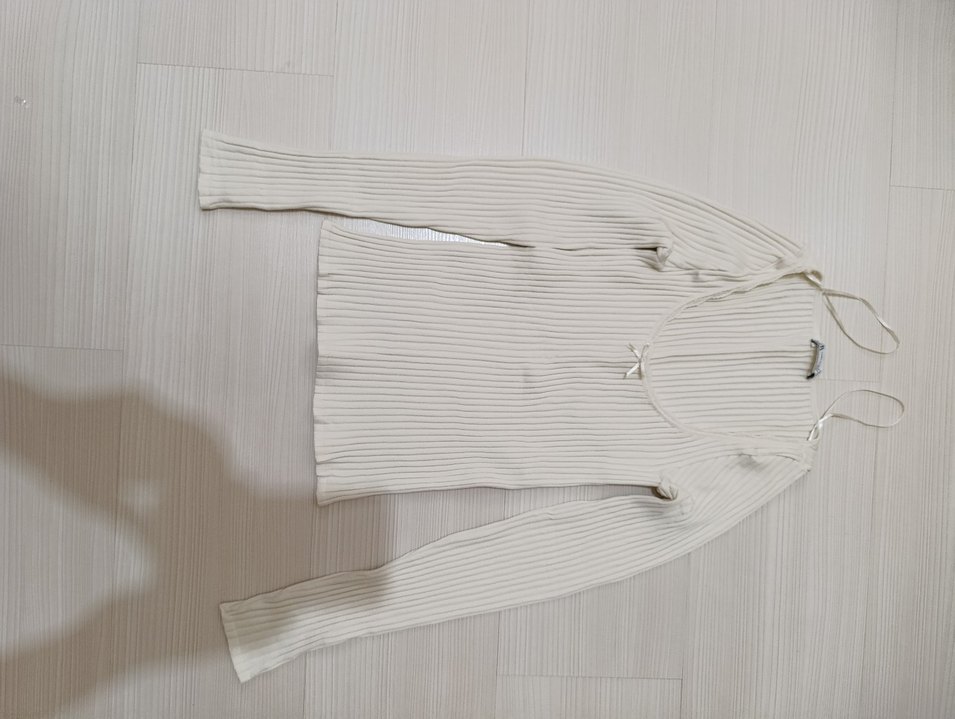 Bej renkte, pliseli dokulu, v yaka ve uzun kollu, ince kesim kadın triko. Yumuşak keten kumaştan üretilmiştir, günlük kullanıma uygundur.