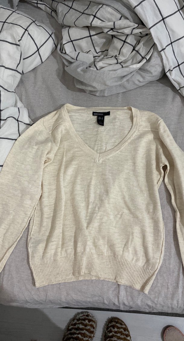 Bej renkli, V yakalı, uzun kollu kadın trikosudur. Yumuşak keten kumaştan üretilmiş, rahat ve bol kesimdir. Günlük kullanıma uygundur.