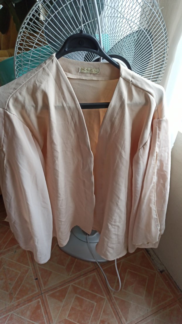 Bej renkte, keten kumaştan, uzun kollu ve V yakalı bol kesim gömlek, düğme detaylı. Günlük sokak stili için uygun.