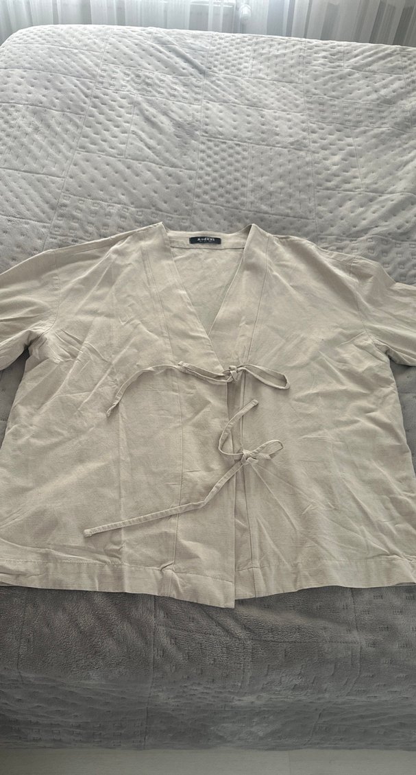 Bej V Yaka Keten Kadın Gömlek hiç kullanılmadı