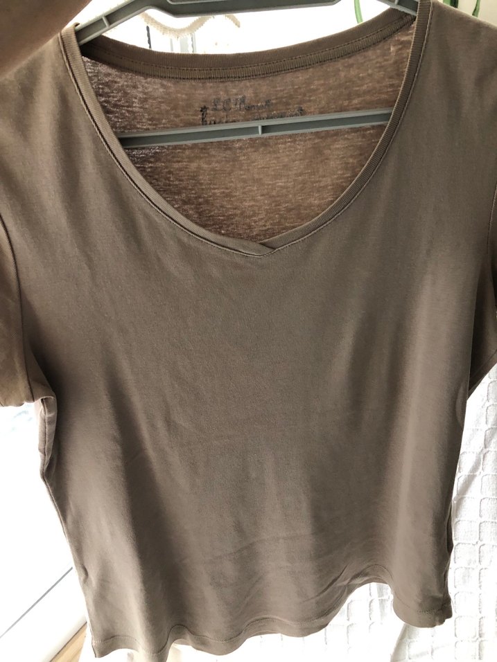Bej renkli, keten kumaştan kısa kollu, V yaka kadın tişörtü. Rahat kesimi ve sade tasarımıyla günlük kullanıma uygundur. Birkaç kez kullanılmış, bir kez yıkanmıştır. Defosuz, likralı, oldukça yumuşak dokulu. Alt kısım oval kesim. Lütfen açıklama ve resimlere göre değerlendiriniz, iade kabul edemiyorum.