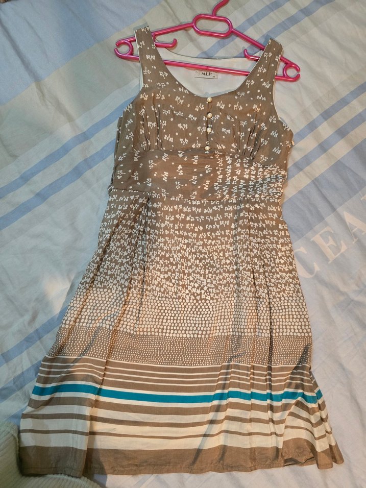 Bej V Yaka Kolsuz Salaş Kadın Elbise