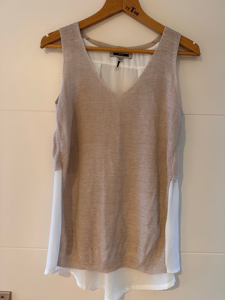 Bej renkli, kolsuz ve V yakalı bu triko, dokusuyla rahat ve salaş bir görünüm sunar. Bej tonları ve desensiz yapısıyla günlük kullanıma uygundur.