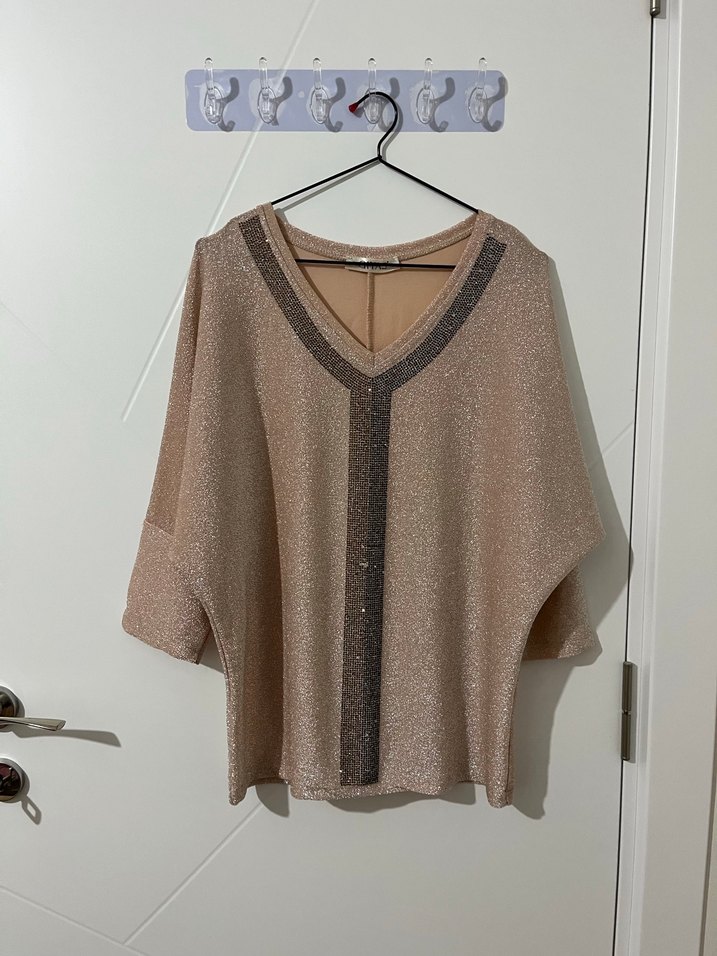 Bej renkli, V yakalı, örgü dokulu kadın kazak. Bol kesim, uzun kollu ve kısa boydadır. Günlük kullanıma uygun, şık ve rahat bir modeldir. ✨boy 63cm göğüs 134cm s-m beden uyumlu bir kaç tane taşı eksik fotoğrafta gösterdim