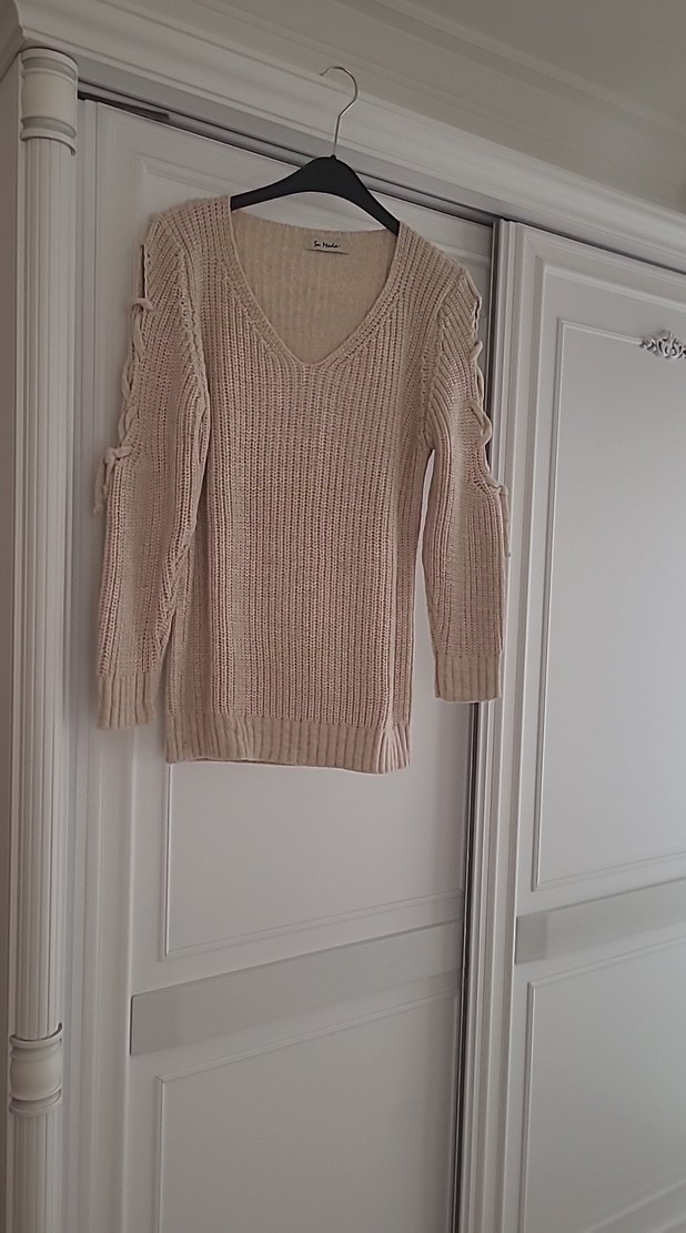 V yakalı ve kolları bağcıklı uzun kollu kazak