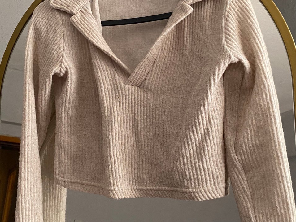 Bej V Yaka Örgü Kadın Keten Kazak