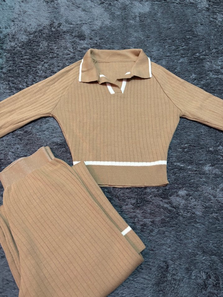 Bej V Yakalı Triko Kadın ikili takım