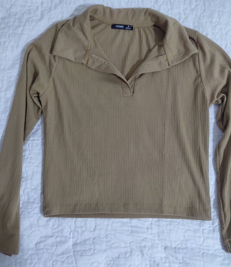 Bej V Yakalı Uzun Kollu Kadın Bluz