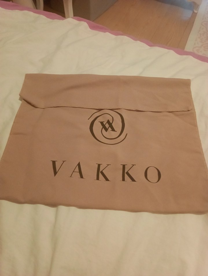 Yumuşak kumaştan, koyu baskılı Vakko logosu bulunan bej çanta . ️