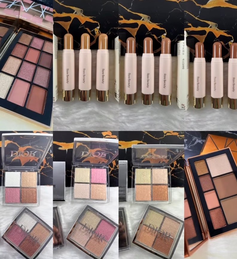 Bej tonlar ve açık renkler içeren göz farı paletleri ve stickleri, yumuşak dokularıyla farklı makyaj stilleri için uygundur.
