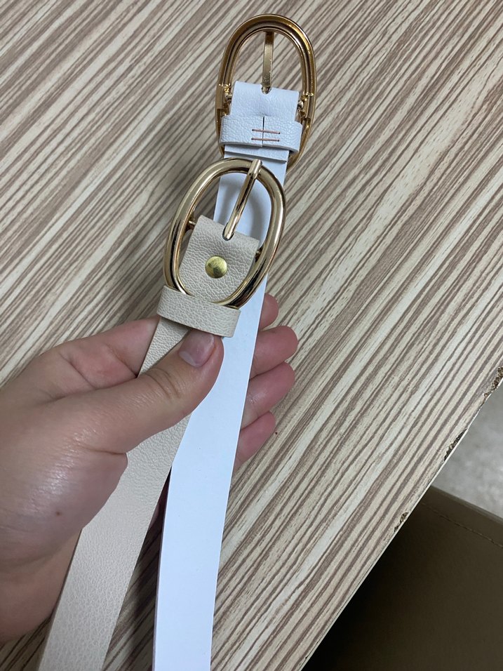 Bej ve beyaz renkli deri ve elastik yapıya sahip kadın kemeri, minimalist ve çağdaş tarzı bir araya getirir. Moda tutkunları için uygun. 2 li