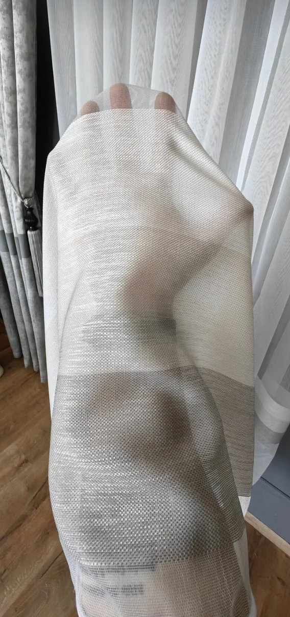 BEJ VE BEYAZIN UYUMU SERİTLİ BAMBU TÜL