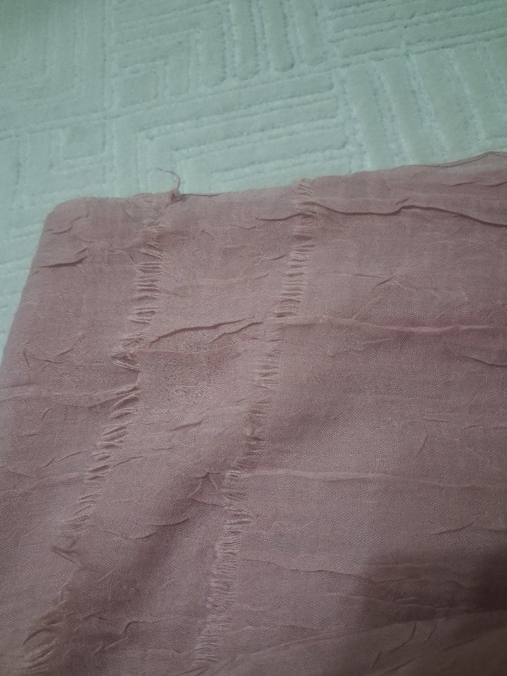 Bej keten kumaştan, fırfır detaylı kadın fular. Temiz kullanılmıyor..