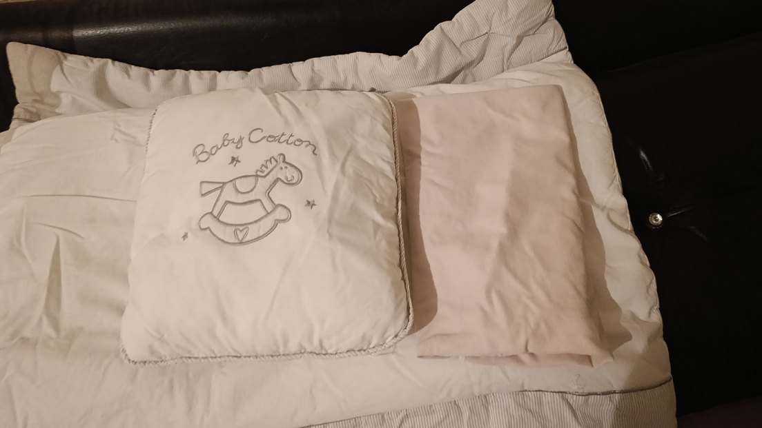 Bej renkte, gri baskılı pamuklu kumaştan yapılmış çocuk yastığı, rahatlık ve sevimli bir tasarım sunar. ️