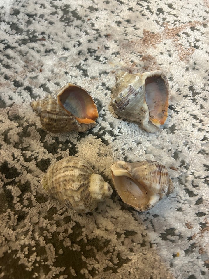Bej ve gri renklerde, doğal dokulu deniz kabukları seti,