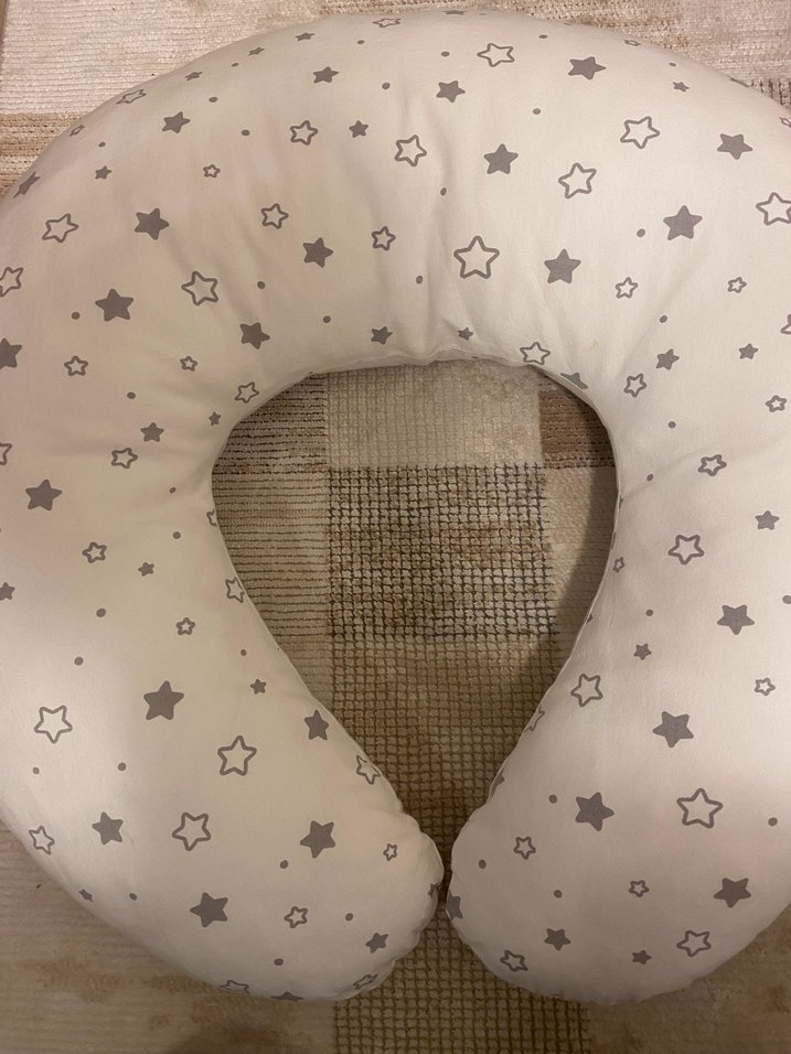 Gri yıldız desenli bej hamile ve emzirme yastığı, konfor ve destek sağlar. Yumuşak kumaşı rahatlık sunar. Çok az sayılı kullanıldı ürün yep yeni tertemiz
