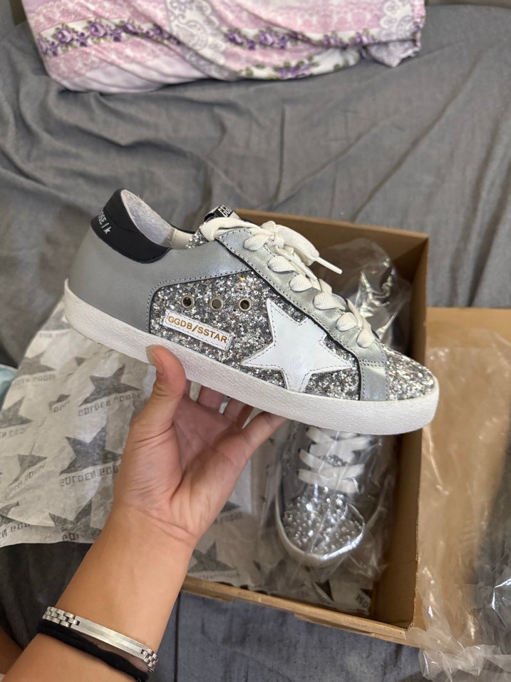 Gri parlak golden gose ayakkabı sadece bir kez giyilmiştir