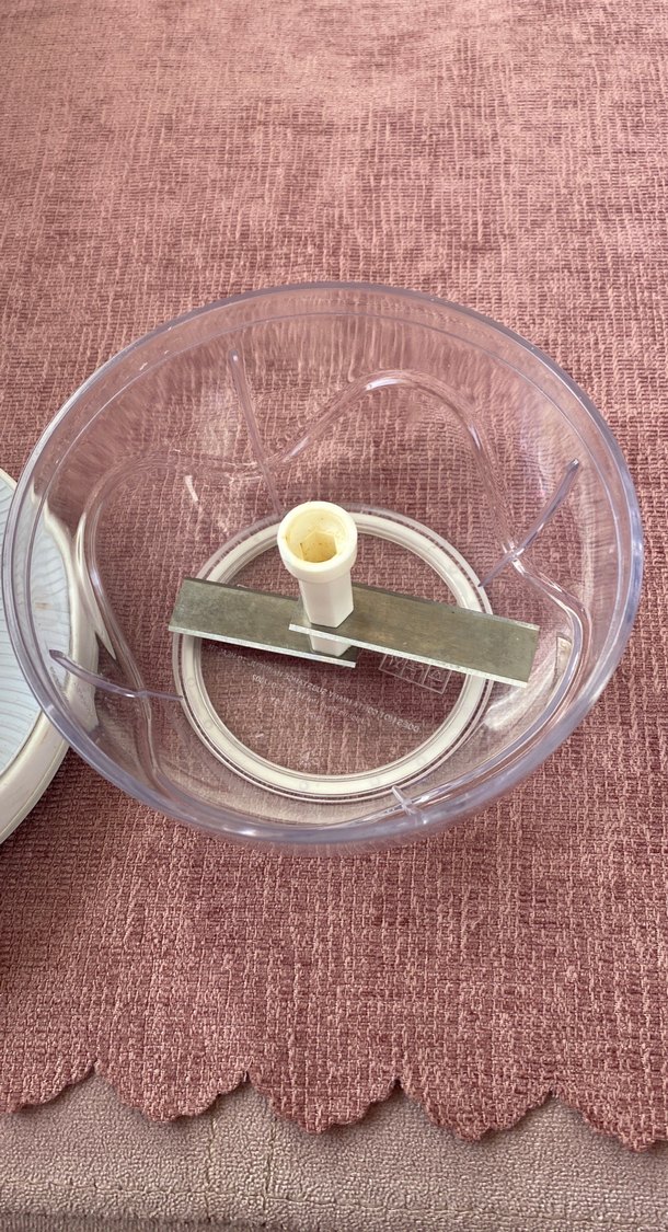 İçinde keskin bıçağı bulunan bej ve gri doğrayıcı haznesi, malzemeleri doğramak için tasarlanmıştır. Şeffaf hazne içeriklerin kolayca görülmesini sağlar. Elle Kıyıcısı sarımsak maydonoz ceviz kıyıcı