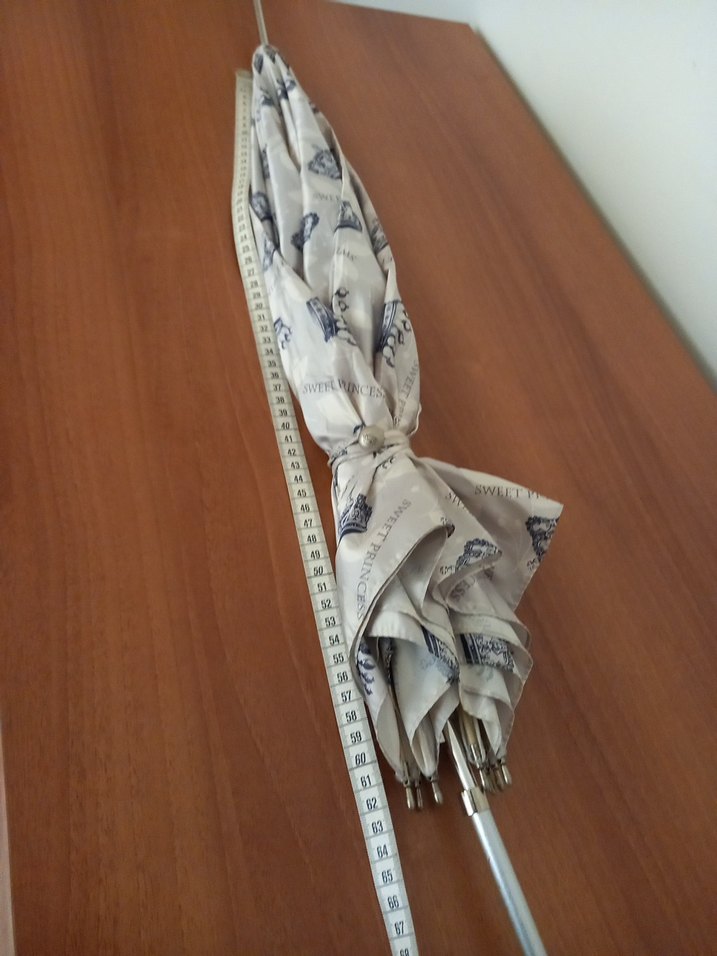 Bej renkli, gri fiyonk detaylı ve vintage Paris esintili desenlere sahip bohem tarzda kadın şemsiye.