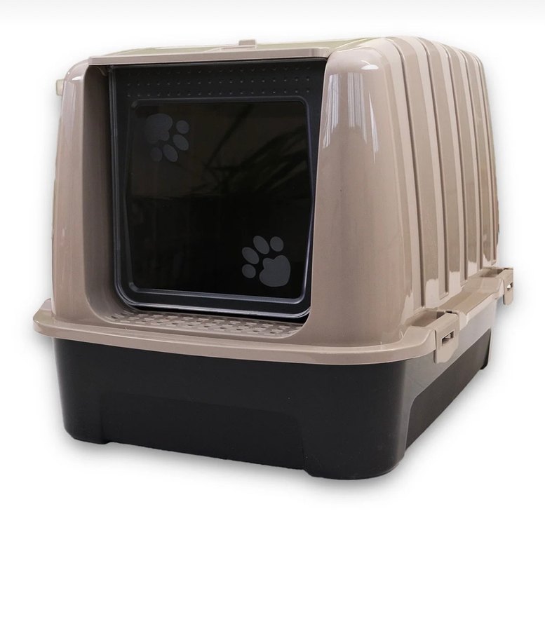 Bej ve Gri Kapalı Kedi Tuvalet Kabı