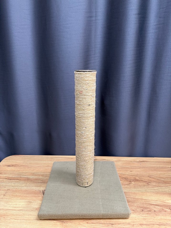 Bej taban ve doğal lifle sarılı gri tırmalama direği, kediler için dayanıklı bir yüzey sunar. RENK SEÇENEKLERİ MEVCUTTUR