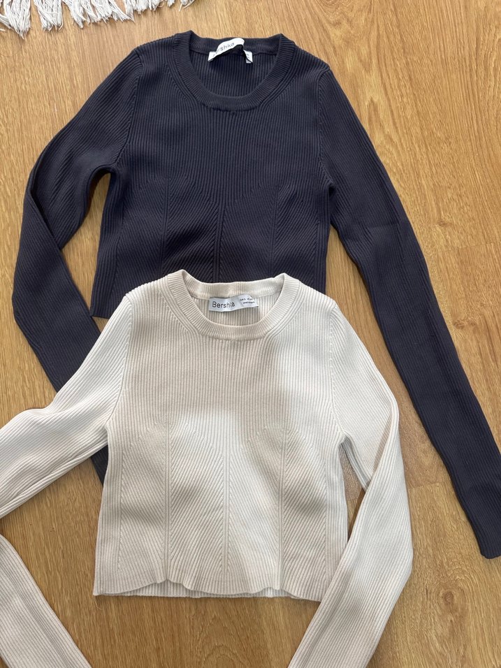 Likralı ve vücuda tam oturur ikiside aynı model kazak. Tertemiz .Uzun kollu, yuvarlak yaka, yumuşak örgü kumaştan bej ve gri renklerde, günlük kullanıma uygun, rahat kesim kadın kazakları.