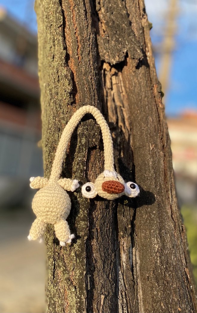 Çanta süsü.Bej ve gri renklerde, yumuşak örgü dokusuna sahip peluş oyuncak, hem sarılmak hem de dekorasyon için uygun.