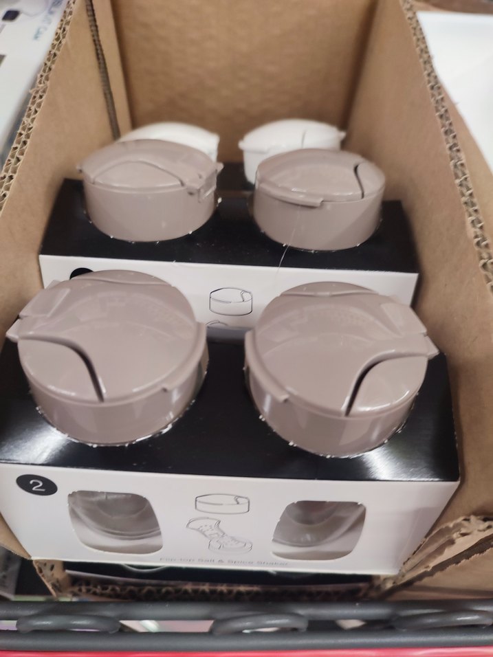 Bej ve gri renkli yiyecek saklama kapakları tuzluk ikili