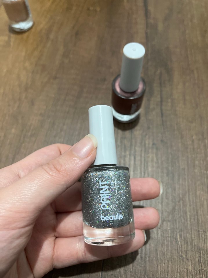 Beauliss markasına ait, parlak gri simli bej renk oje, tırnaklara ışıltı katıyor.