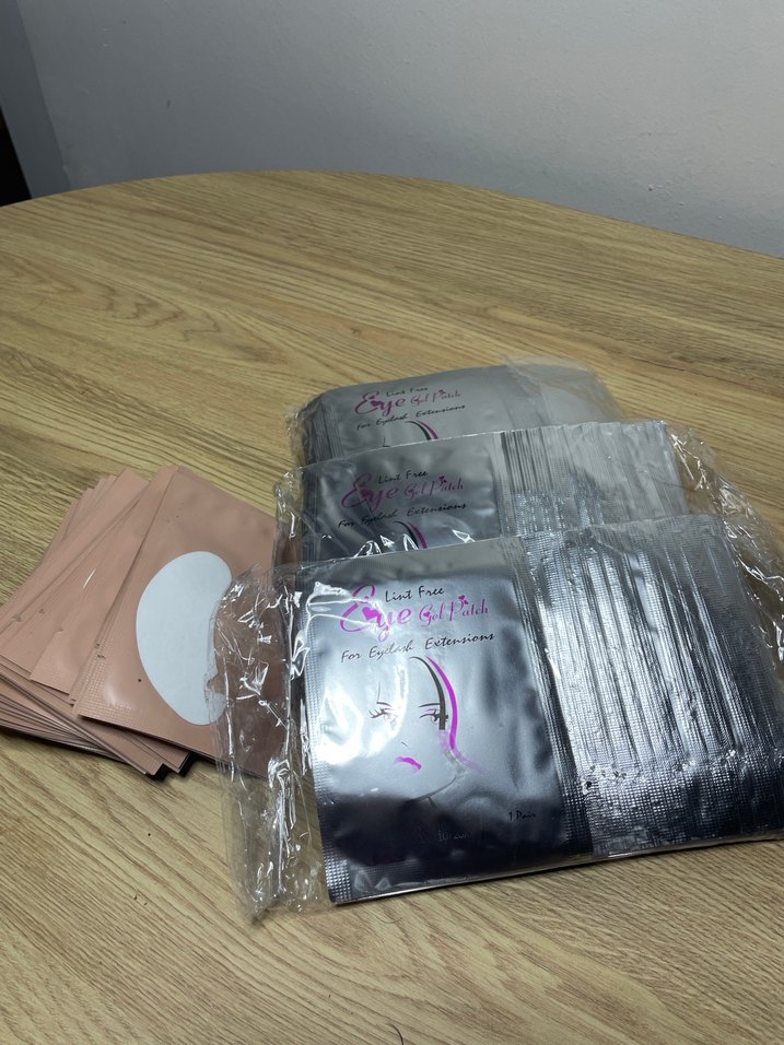 Göz uzatma için kullanılan yapışkan pedlerle birlikte bej ve gri renkte takma kirpik seti. Birden fazla paket içerir. ️