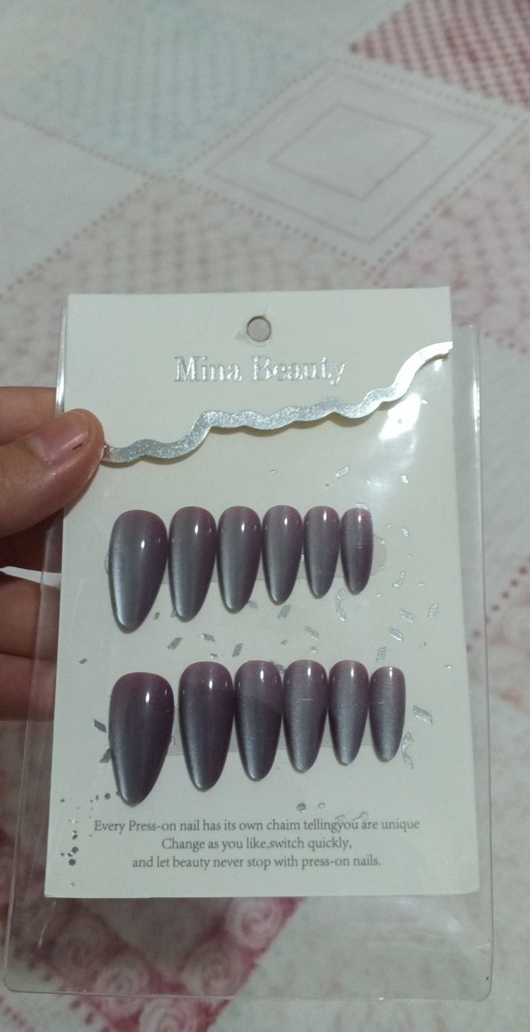 Bej ve canlı gri tonlarında, pürüzsüz yüzeyli takma tırnak seti. Her tırnak benzersiz bir anlam taşır, hızlı değişimle güzellik devam eder. yapışkani içinde