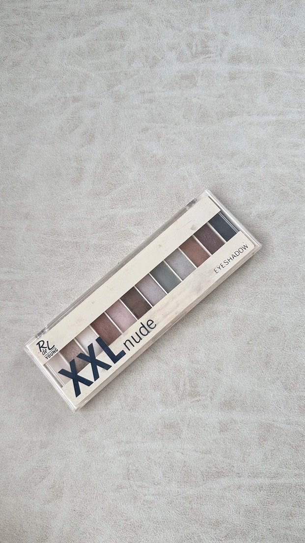 XXL Nude adlı far paleti, bej ve gri tonlarda çeşitli nötr renkler sunar.