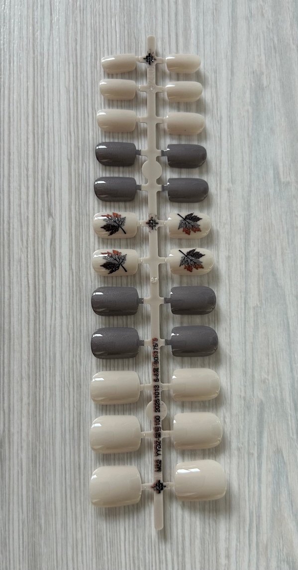 Bej ve Gri Yaprak Desenli Takma Tırnak Seti