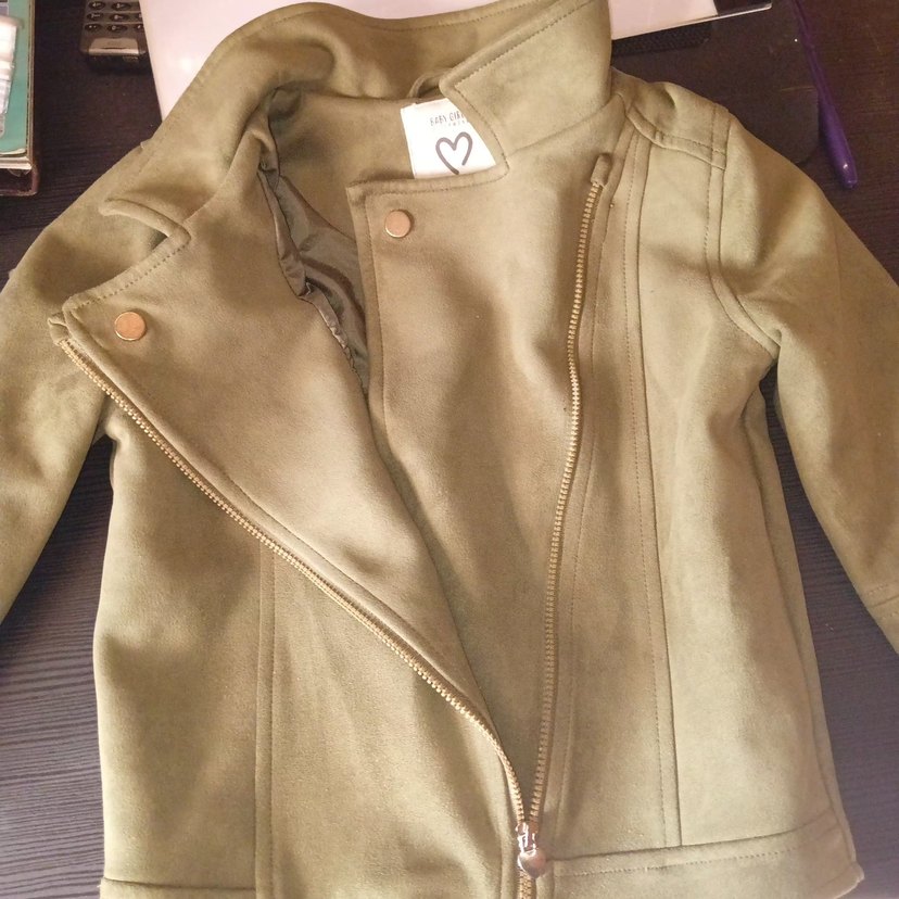 Bej ve Haki arası renk Süet Kız Çocuk Deri Ceket 5-6 yaş