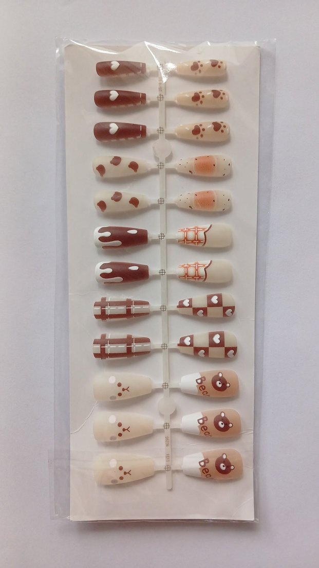 24'lü ayıcık temalı Bej ve kahverengi tonlarında, kalp, benek ve ayı yüzü desenli detaylı tırnak süsü seti. Tırnaklara şirinlik katmak için ideal. içerisinde törpüsü ve yapışkanı bulunmaktadır paket ile gönderim yapılır hemen kargo