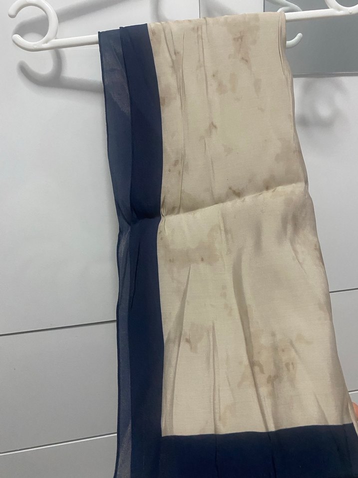 Bej ve kenarları lacivert Kadın Drapeli Şal