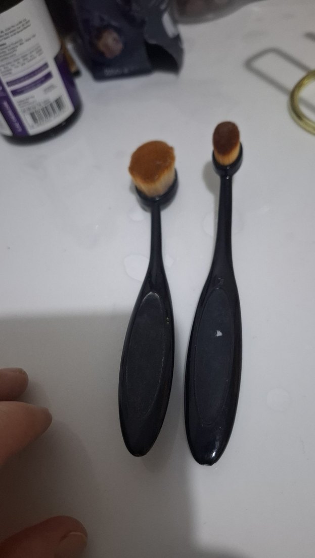 Koyu renk saplara sahip, bej kıllı iki makyaj fırçası, pürüzsüz uygulama için uygun. ️