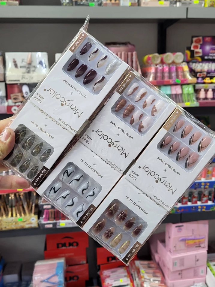 Bej ve koyu renk tonlarında çeşitli tasarımlara sahip, 7 güne kadar dayanıklı tırnak süsleri seti. Canlı renklerle tırnak görünümünü artırır.