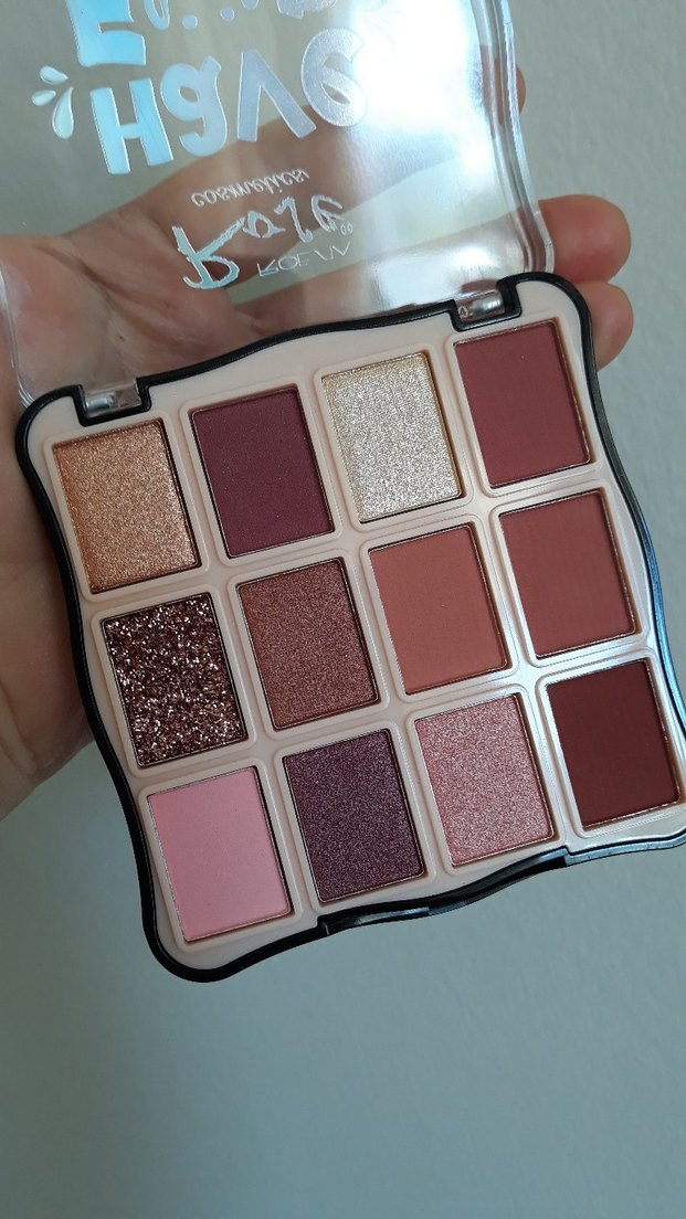 Bej ve koyu tonlarda, mat ve simli dokulara sahip on iki renkli far paleti. ️