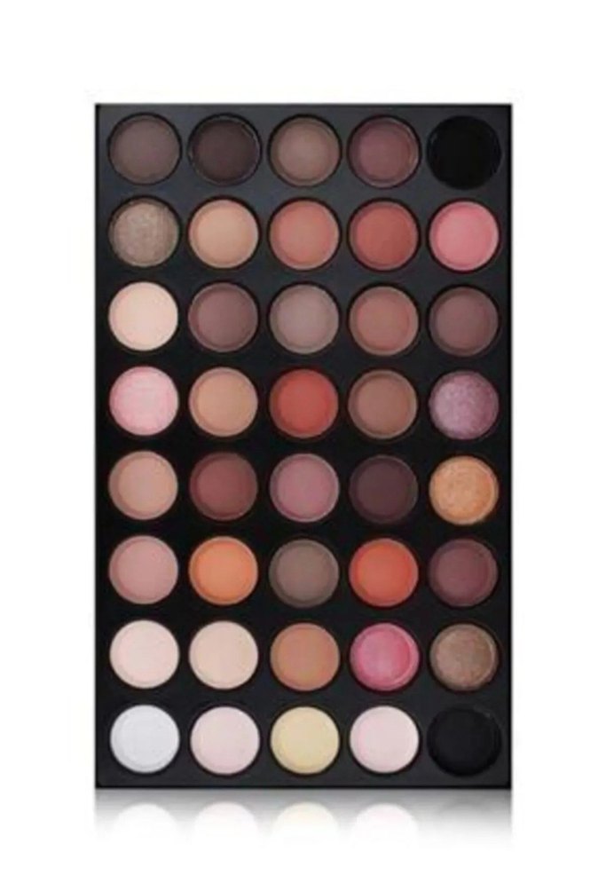 Bej ve koyu tonlarda, farklı renk seçenekleri sunan kompakt göz farı paleti.
