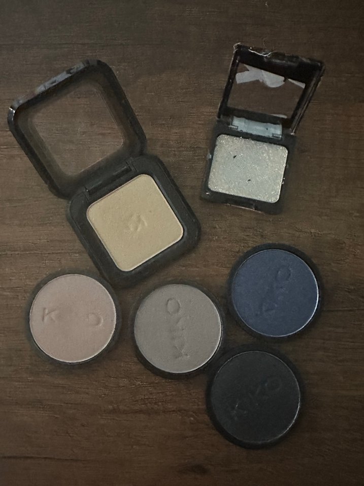 Mat ve ışıltılı bitişlere sahip bej ve koyu tonlarda göz farı seti, çeşitli makyaj stilleri için uygundur.