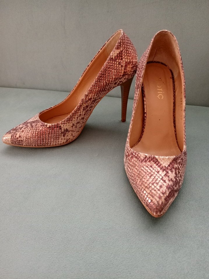 Bej ve Leylak Deri Yılan Desenli Stiletto Topuklu Ayakkabı